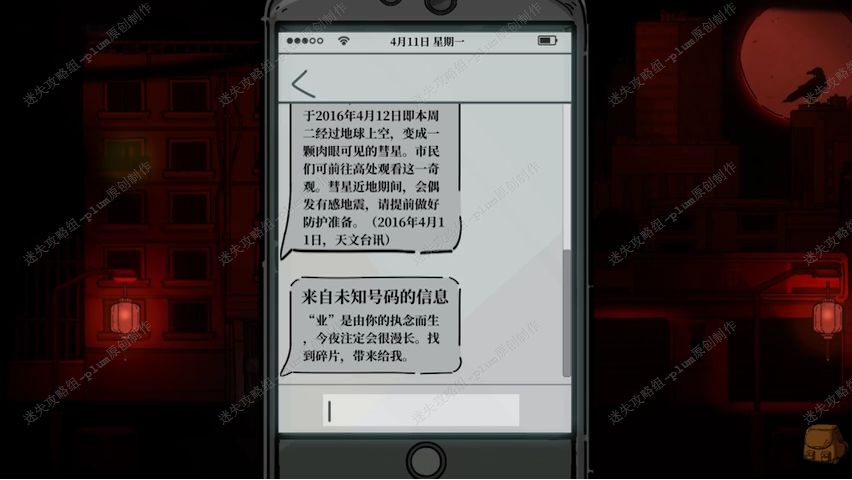 🔹4、手机震动得到信息,提示怪物“业”来到这里,赶快往左边跑。(不然要跑好多遍你信我)