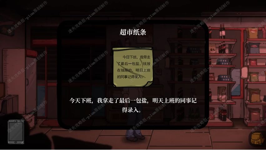 🔹3. 地上有张纸条提示最后一包盐被带走了,同时要通知第二天上班的人。点击墙上的排班表。