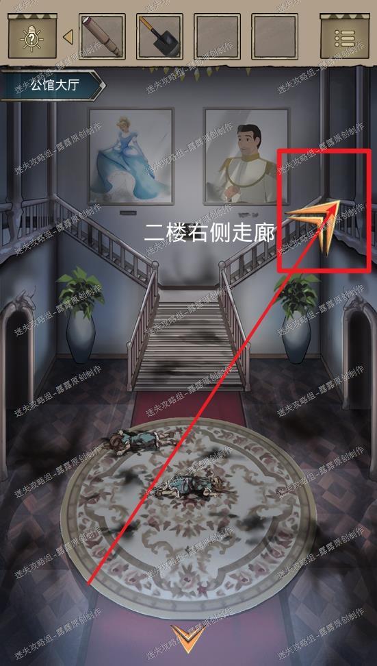 点击进入二楼右侧走廊,走廊里纪念屋的大门自动打开,进入纪念屋。