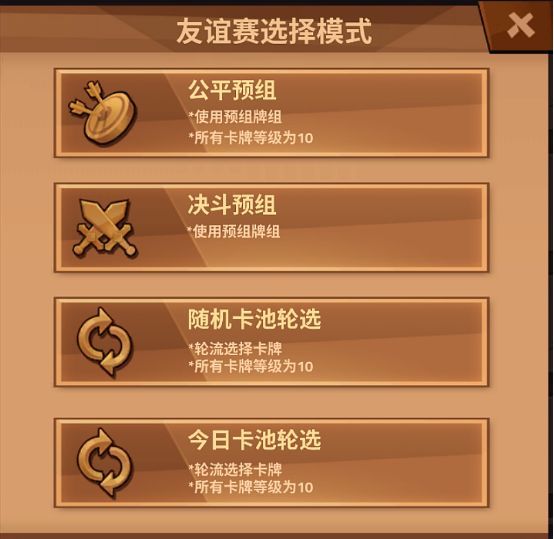 最后的最后,我比较建议有朋友一起玩,这样可以跳过养成部分直接打公平对决。在熟悉游戏熟悉卡牌的阶段能打友谊赛随机轮选,对直观地熟悉角色、装备、道具有很大的好处。只有你知道对面是什么,能干什么,大概什么时候干,力度多大这些东西,才能打一手好牌。