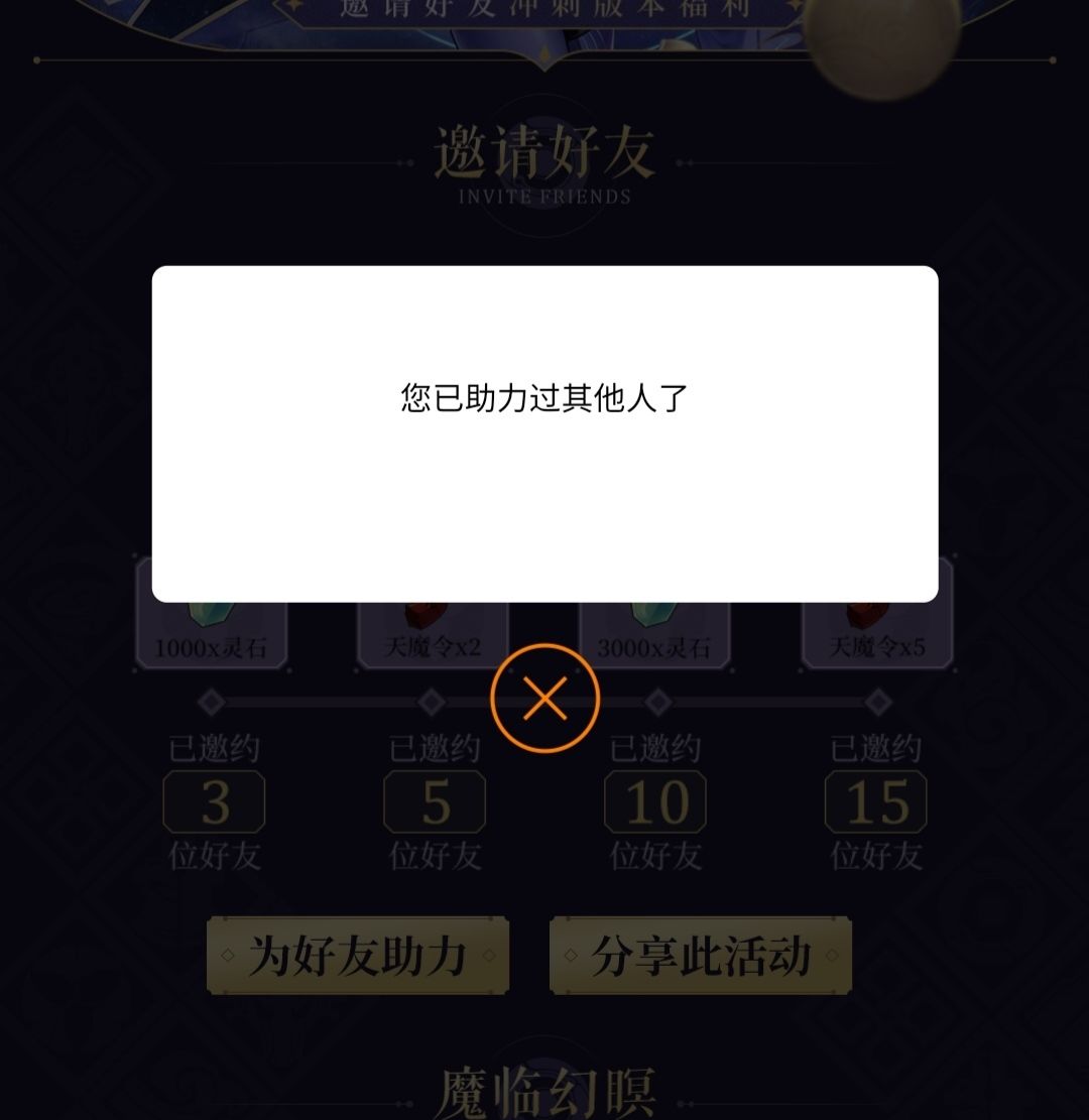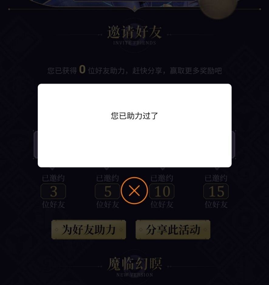 ↓这是帮助其他人助力后点击为好友助力正常的显示