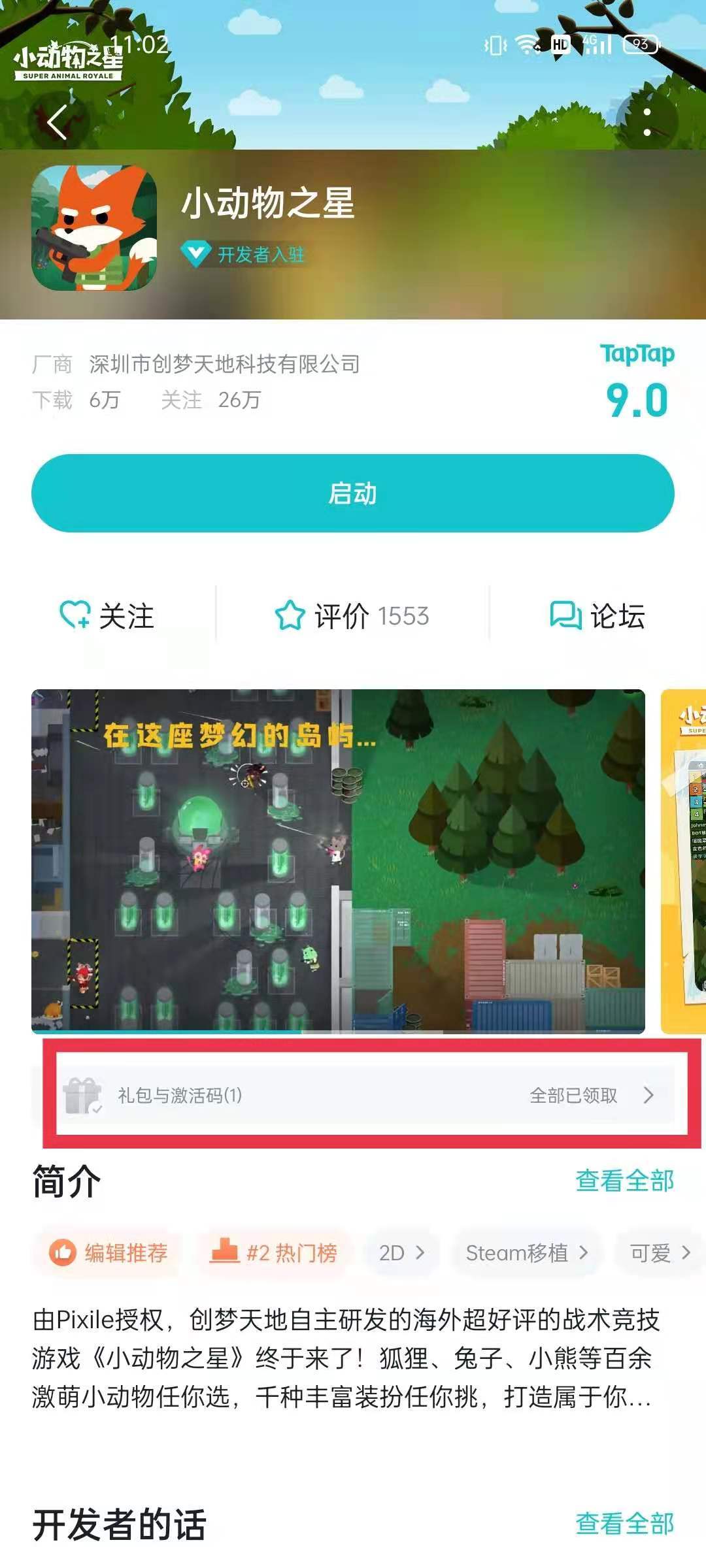 2. 找到游戏详情页点击【礼包与激活码】;