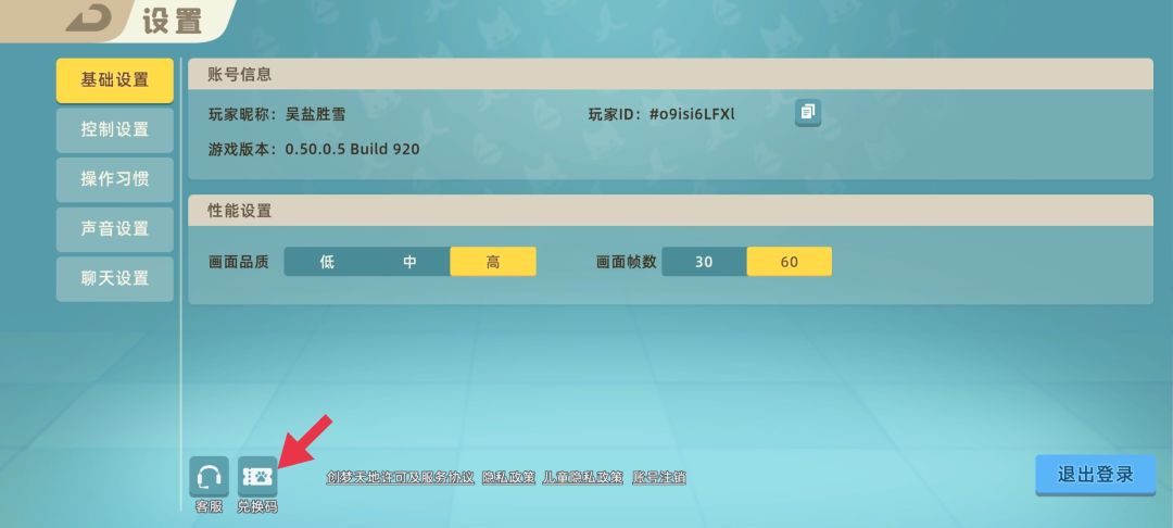 4. 进入游戏--设置--基础设置--兑换码