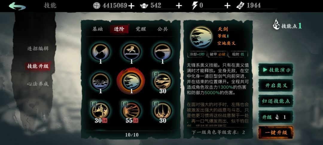 一、奥义选择:天剑