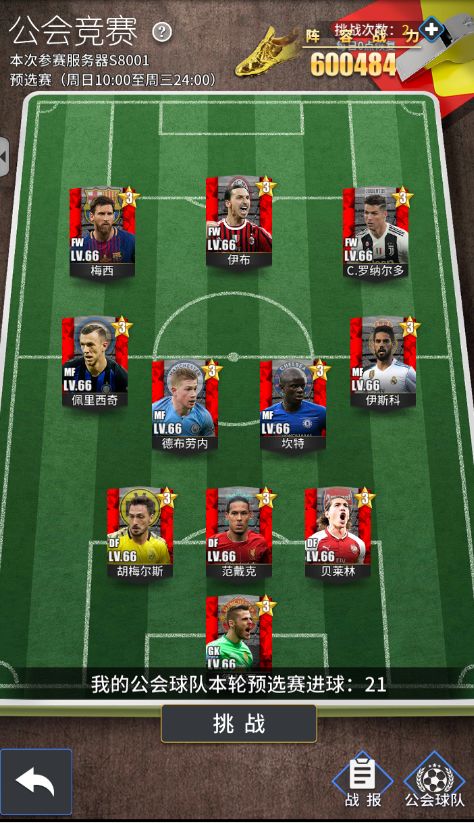 公会竞赛每个赛季会将4-5个服务器分在一个战区,赛季分为两个阶段,首先是预选赛,时间为周日10点到周三24点。每位玩家拥有一定的挑战次数,可以使用公会阵容挑战传奇球队,将每场比赛的进球数累计相加计入排行榜,最终排行前三的队伍晋级争夺赛,4-6名会有淘汰奖励。