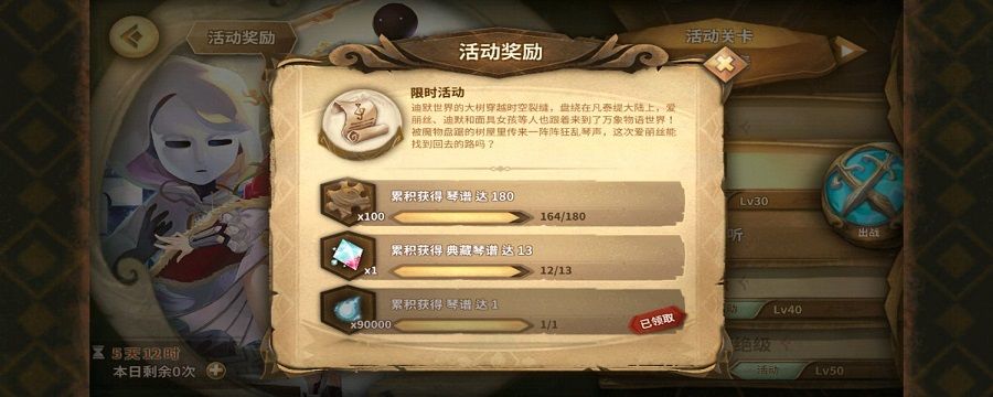 但是这一切的前提是需要先获得铃铛道具,并完成第一个限时任务,铃铛的获得方法为:首先,进入夜曲20级,然后向右走,进第一个门,进去后能看到散落在地上的一本书和书架,接着点击地上的书,会出现121.518.549的数组,接下来观察一下每个书架发光的书排第几本,然后就能发现上述数组分别对应第四、第六、第一个书架,依照顺序点击书架就能获得铃铛了。