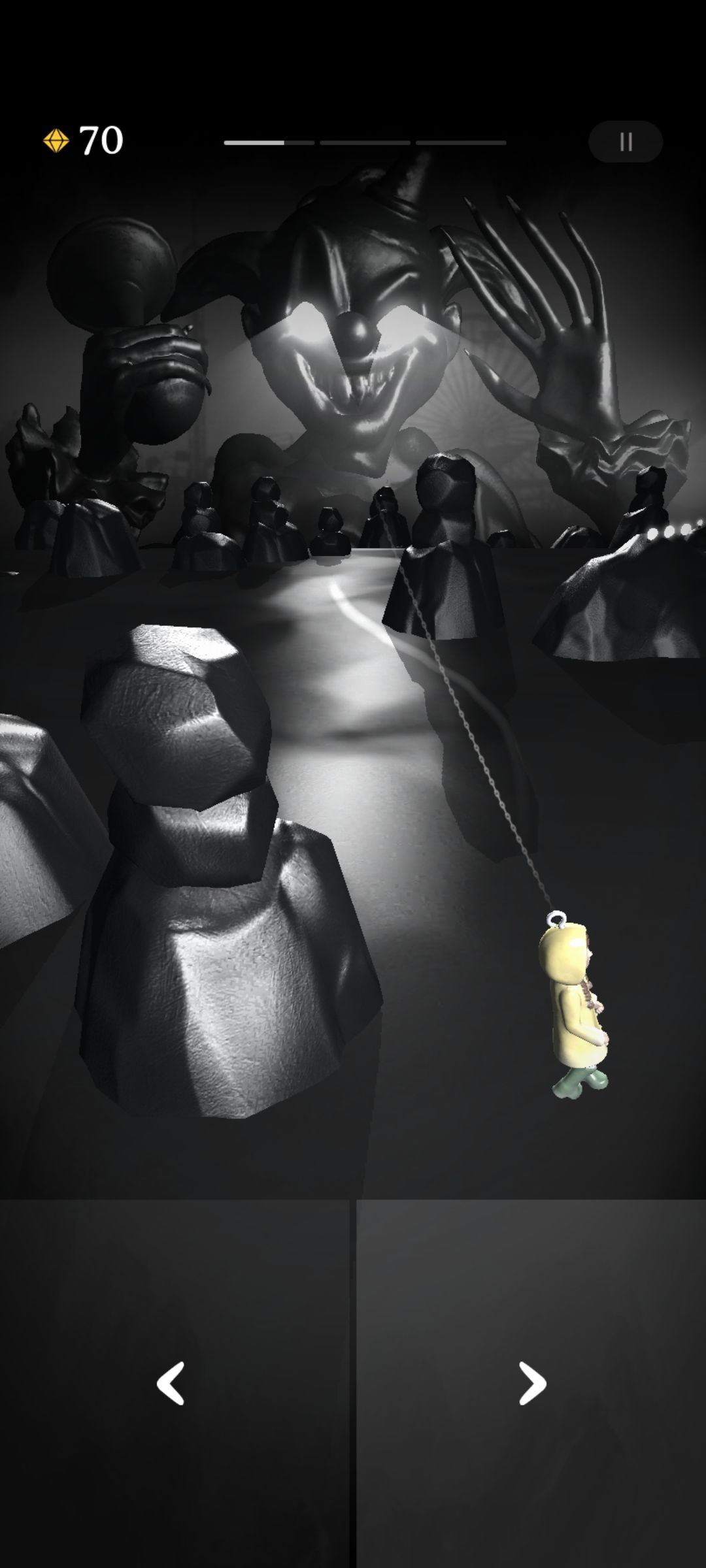 这让我想起了上吊神曲,然而这游戏场景和bgm是很诡异的,另外由于娃娃是陶瓷的,一旦撞到障碍物会碎一地