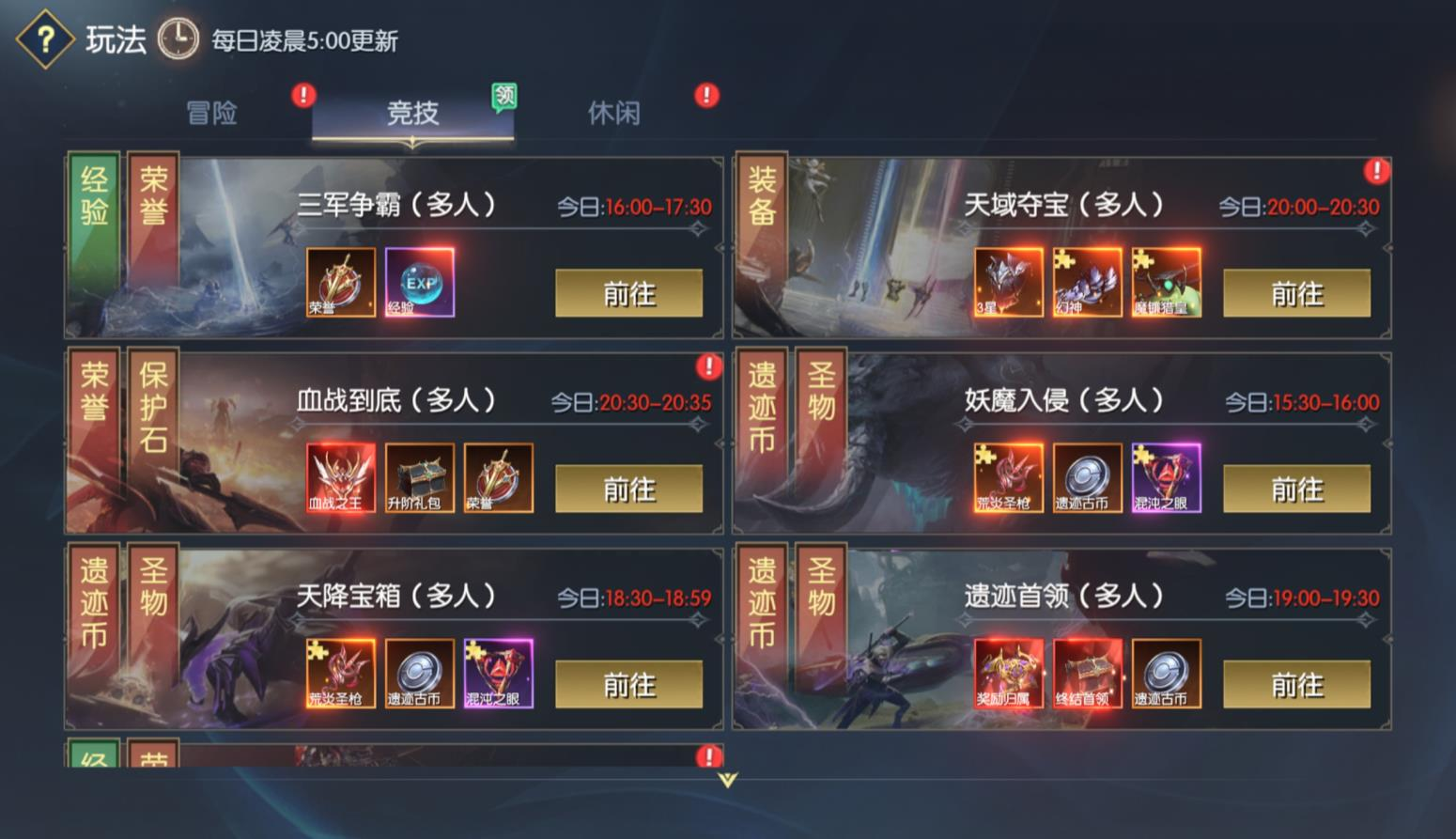 此外,《战神遗迹》还有“三军争霸”玩法,几个朋友组队一起,三个队伍碰撞抢占资源,考验操作又考验战术;甚至还有更大场面 “天域夺宝”,以战盟为单位,几百上千人的顶级战场,仿佛让人回到了当年魔兽开荒、传奇攻沙的年代。