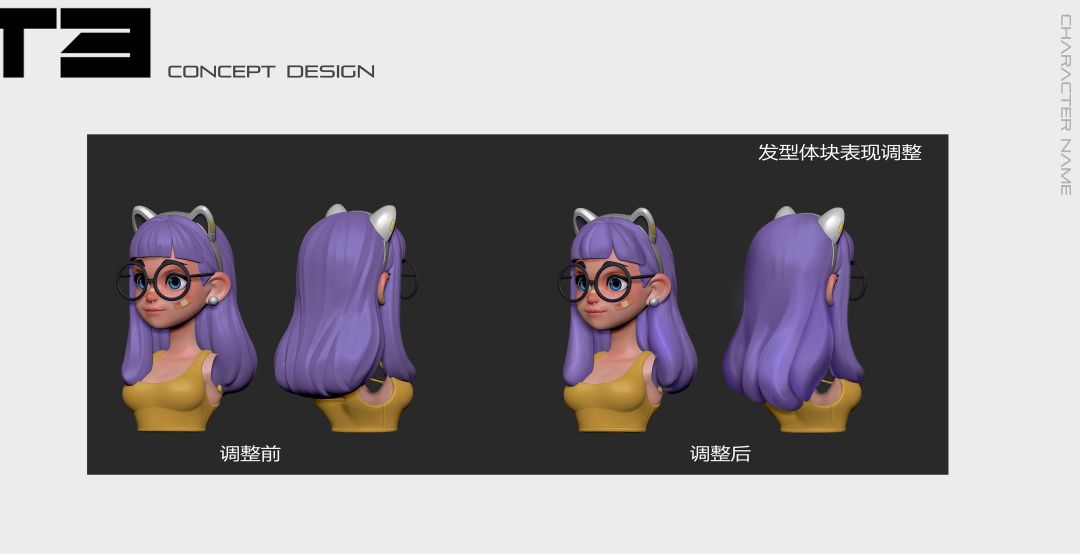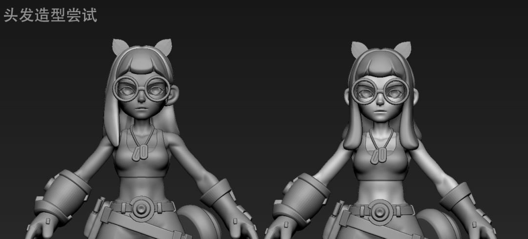 在角色整体设计方案确定下来之后,虎子又忍不住为给孩子换个几版发色和配饰,还为”要不要给孩子戴个猫耳朵“、“头发要不要别到耳朵后面“纠结了好久…(T3老父亲团人数+1)