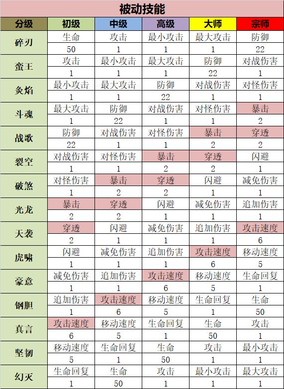 啥也不说了 上点干货 人人都在说萌新阶段 那后期技能怎么配 每个技能属性是啥 一图流 图中是暴击 攻速 穿透标注 想走什么路线 自己看技能重叠和对应的技能书等级 不要好高骛远 全看宗师 欢迎大佬们提供思路 流派 我要做无脑搬运工