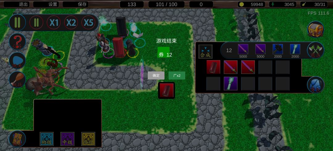 今天更新,打了两把试了一下新羁绊,发现打挑战怪很牛,而且装备的新效果也不错,就是同时攻击多个敌人,很大的提高了输出,因为我开了5倍速刷资源,后来刷质量的时候手慢忘关了,到了133关,如果节奏不失误,应该可以到160关,甚至更多,因为更新的升魔升仙很强,棺材和大虫子永远滴神,不解释,升魔是法,升仙是物。图二是塔位摆放,能够最大吃到buff塔的buff,红色是buff塔,其余的是英雄塔。以上是我个人心得,这个塔位摆放希望能帮到你们,如果这个游戏玩的人多了,我再更新一些小tips。好了,等我刷个200关再回来,给自己的理论增加些实际证据,有什么好的想法大家也可以互相交流,毕竟这个游戏让我想起以前打绿圈的时候,偶尔打两把很开心,谢谢作者开发这个游戏。😃