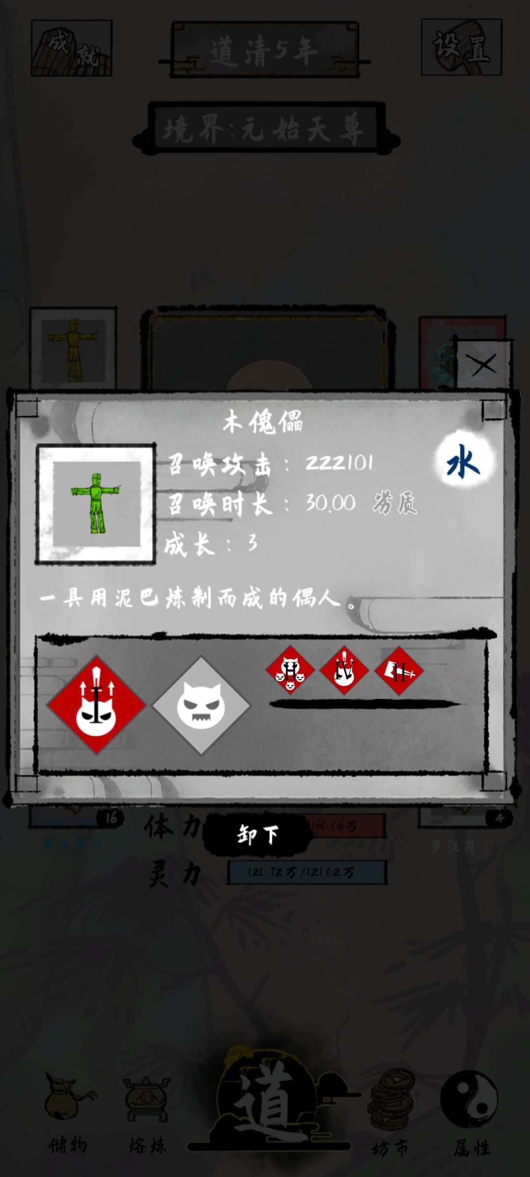 2、不要单纯盯着法宝颜色选择法宝,红色不一定比白色强,主要看词条。建议前期傀儡起手,选择一下召多个的用,能抗能打真香。如果后期遇见强力法宝再更换,没有好法宝的话,6个傀儡一样能达到元始天尊。