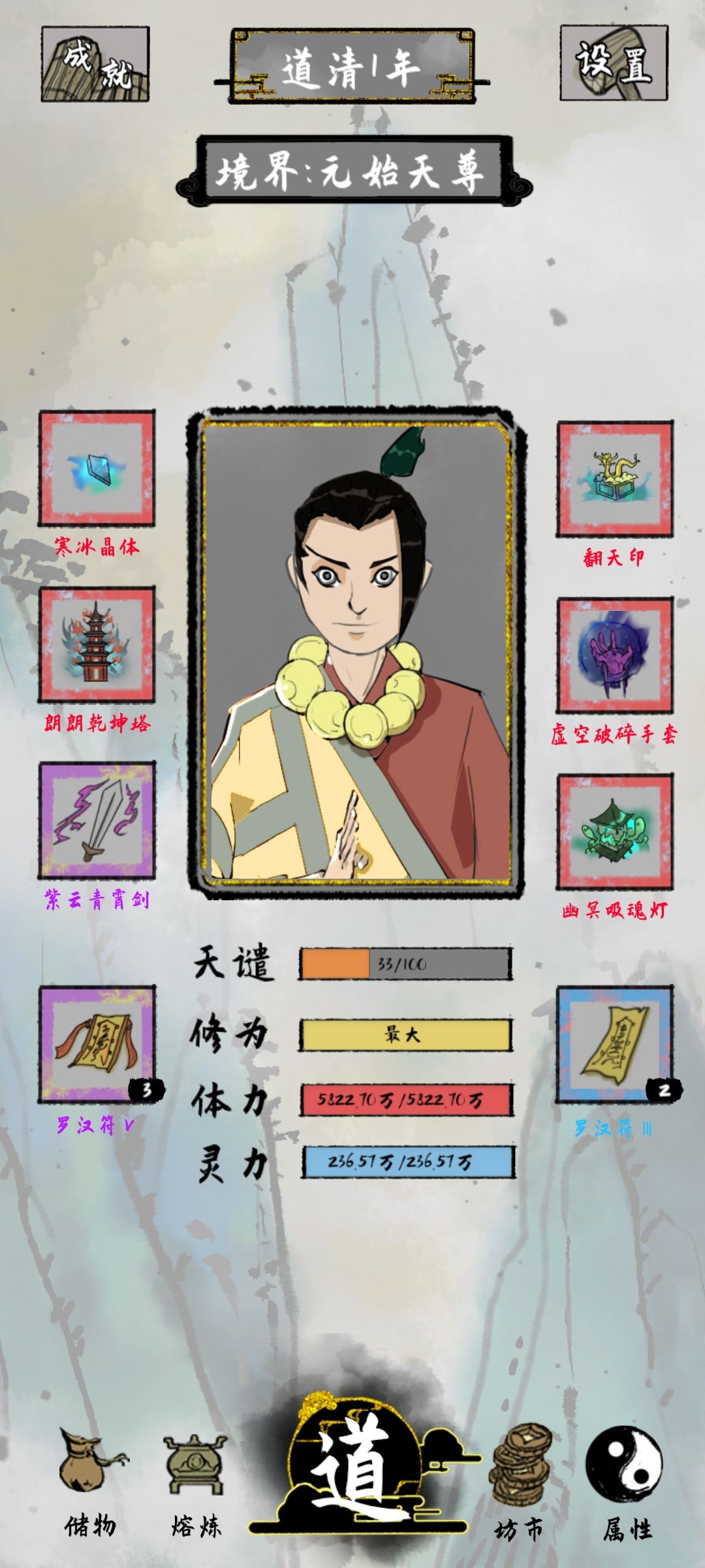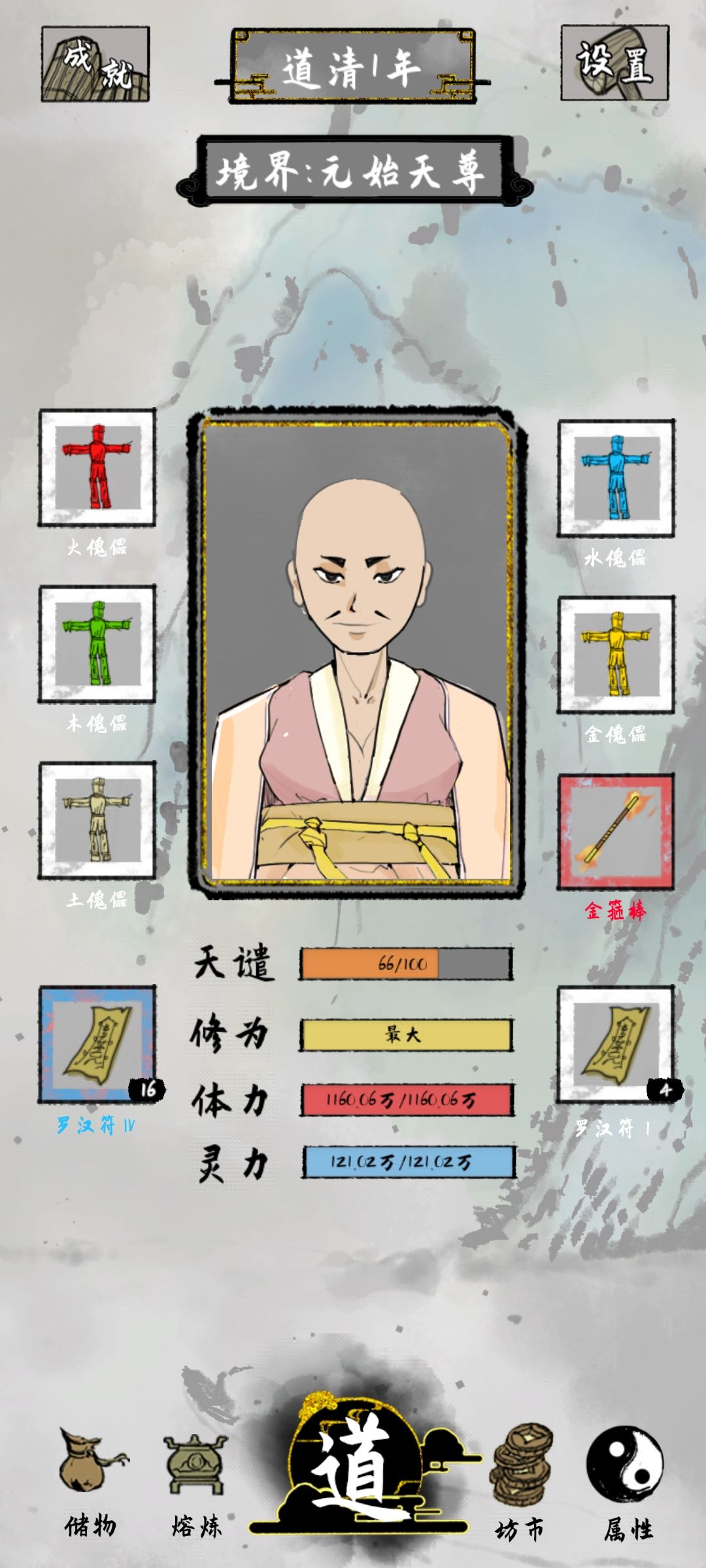3、灵石很重要,在元婴期之前多刷商店找加属性的药,化神之后用灵石摆阵刷修为。一定要攒灵石,大罗金仙要26亿修为,没灵石没木头人基本会被耗死。
