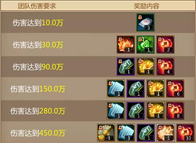单局内全队伤害达到指定阶段有概率获得对应阶段奖励。进入排行榜的军团,活动结束后奖励会发放至军团成员邮箱。