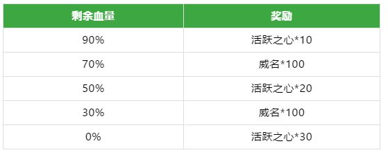 当世界首领剩余生命值达到指定值时,全区玩家可领取丰厚奖励(等级达到11级才能领取),单局全队伤害会按比例对首领造成伤害。