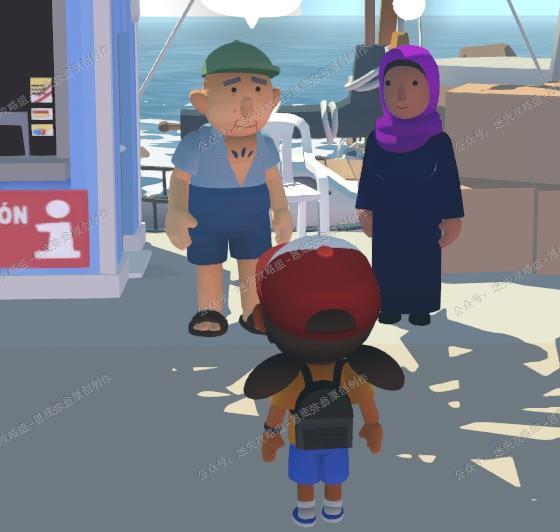 1、到了星期六玩家操控的阿尔芭是哦那个了,玩家切换成操作爷爷,来到广场和大妈对话,之后前往家里。