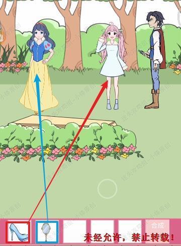 12、我们将镜子给左边的女孩,再将水晶鞋还有毒苹果给女主。12