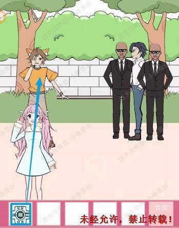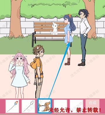 34、我们首先将猫耳朵还有狗尾草合成然后给蓝色衣服女孩,拿白色的狗尾草放到白猫身上,然后给女主34