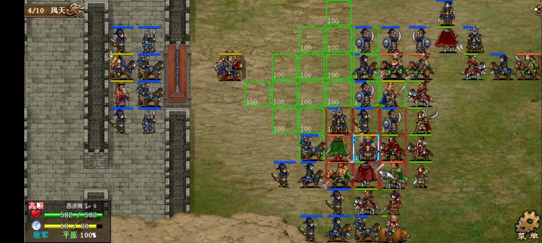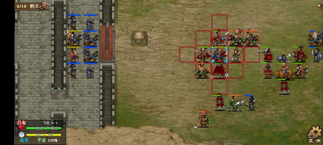 第九回合经验如上,第十回合触发战斗,夏侯惇与曹操形成田字卡位,保护曹操