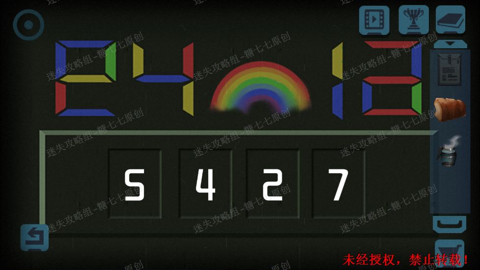 52.进入右边的房间点击后面的机器,根据四个图像解开密码321 4789。52