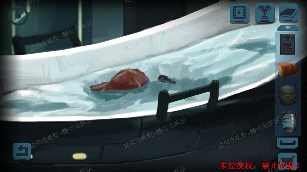 29.点击浴缸,把开水倒在上面。取出肉块组织和,柜子机关钥匙。29