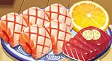 其中一道主食是金枪鱼搭配柠檬和三文鱼