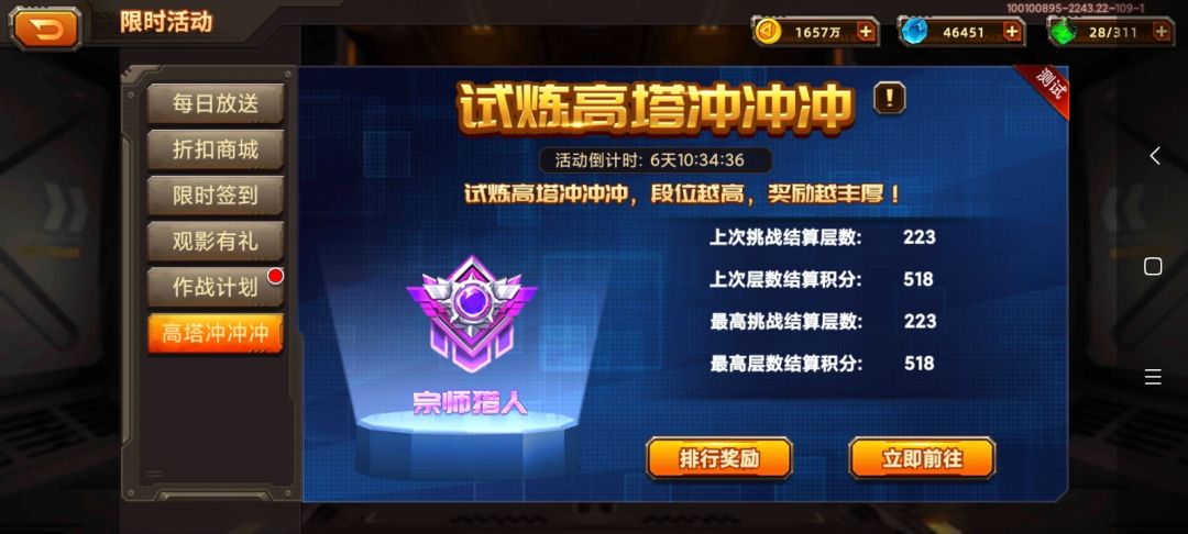 【日常划水】水到223层!希望能进高塔前30名!!!