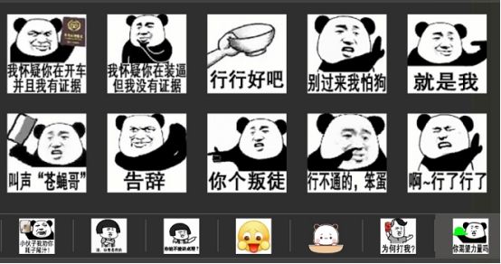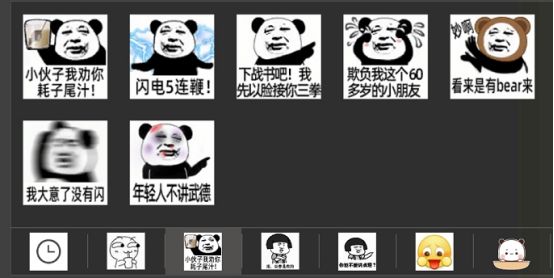 结果后来当我过几天再上游戏测试的时候,策划小哥就说给我们准备了个惊喜,当我打开聊天频道,就发现了一整排表情包: