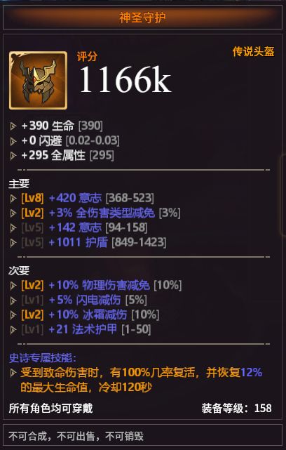 目前依盖当中的装备共分为五种等级,白、绿、蓝、紫、橙。橙装拥有独一无二的专属技能,比如下图的【神圣守护】。当然,橙装的掉落和获取途径较其他等级的装备相比会略低,但我们同样可以选择其他拥有装备技能的装备来进行搭配。