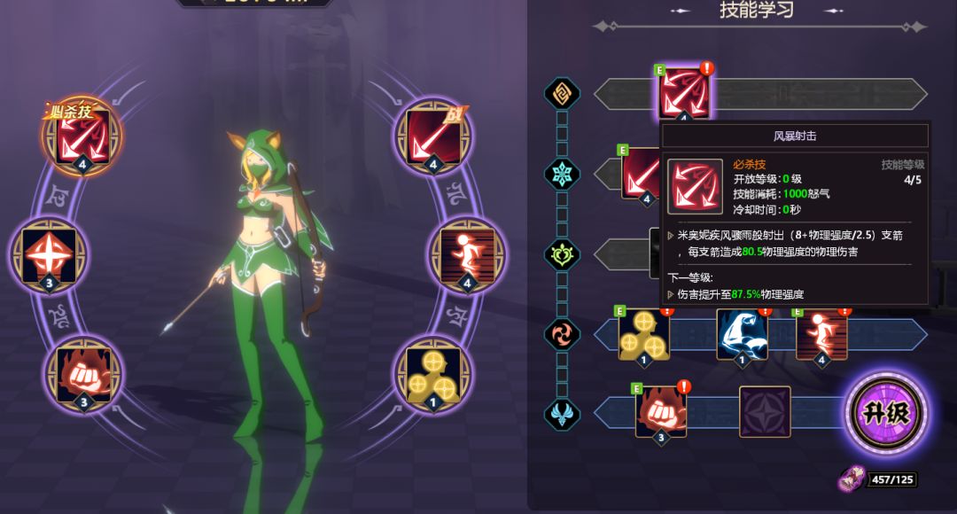 而紫装的特质除了提升角色的输出手段,还能够彻底改变一个角色的玩法。比如下图中的猫女弓箭手,原本的角色定位就是单纯的远程输出,如果搭配了拥有特质的装备,配合她本身的爆发式输出,便能在输出的同时兼具更多的功能。