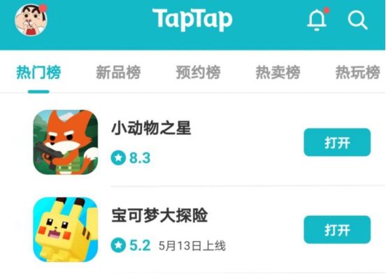 TapTap热门榜上《小动物之星》排名还在《宝可梦大探险》之上