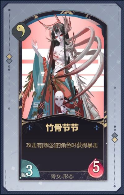 进攻型式神的基础面板,前期身板较脆,也触发不了几次[怨念]。但骨女的形态对身材非常敏感,让别人给她加身材或许也是个不错的思路。