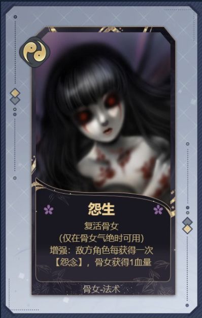 骨女挂[怨念]除了这个法术就只有SSR幻境了,但是这个法术有增强瞬发,是一回合combo乱杀必备的,把握这一回合的机会。