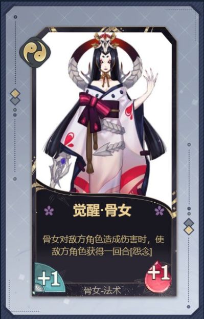 标签为:输出·控场 的青岚系式神——骨女,她所独有的[怨念]效果能够使被[怨念]附加的角色无法获得治疗效果,针对人面树小僧桃花樱花青缘都能有明确的效果。后期更是能在[怨念]大范围附加的环境中对敌方角色造成高额伤害。