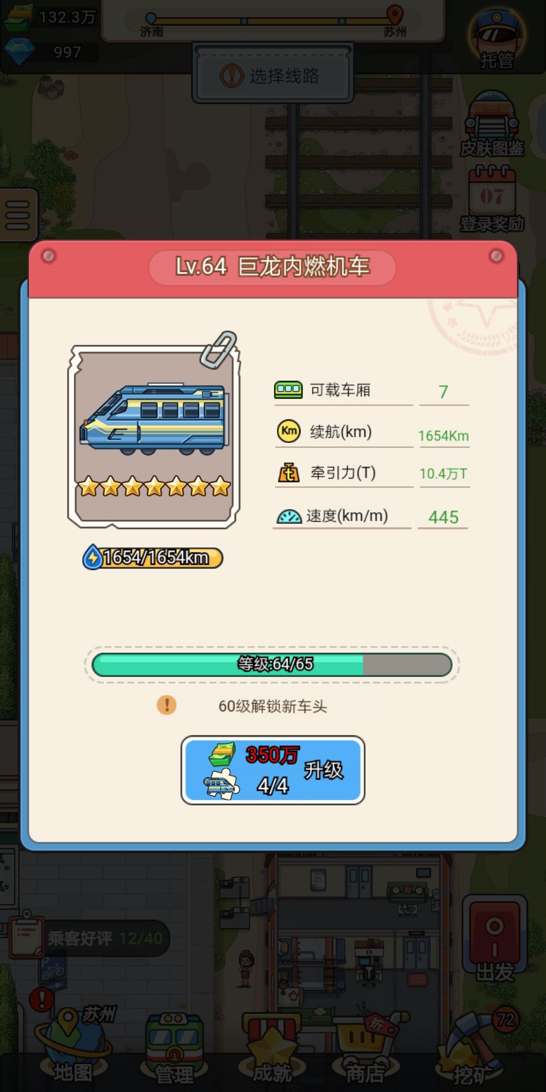 我车头现在64了,下面显示的怎么还是60级解锁新车头?是升级到顶了,还是怎么回事?