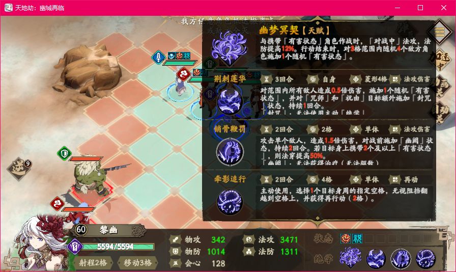 其中黎幽的天赋属于15个DEBUFF的池,这其中无[乱神I]、[眩晕]、[中毒]、[封咒]等异常状态;