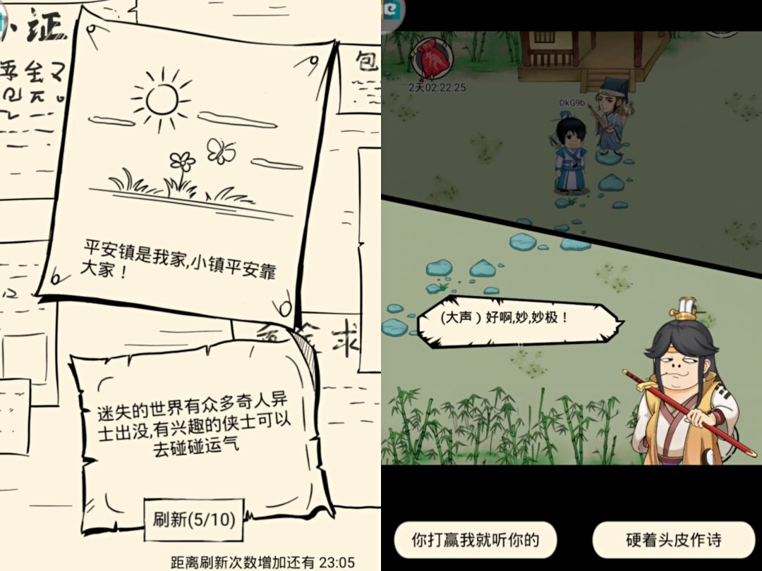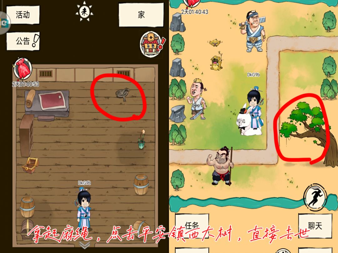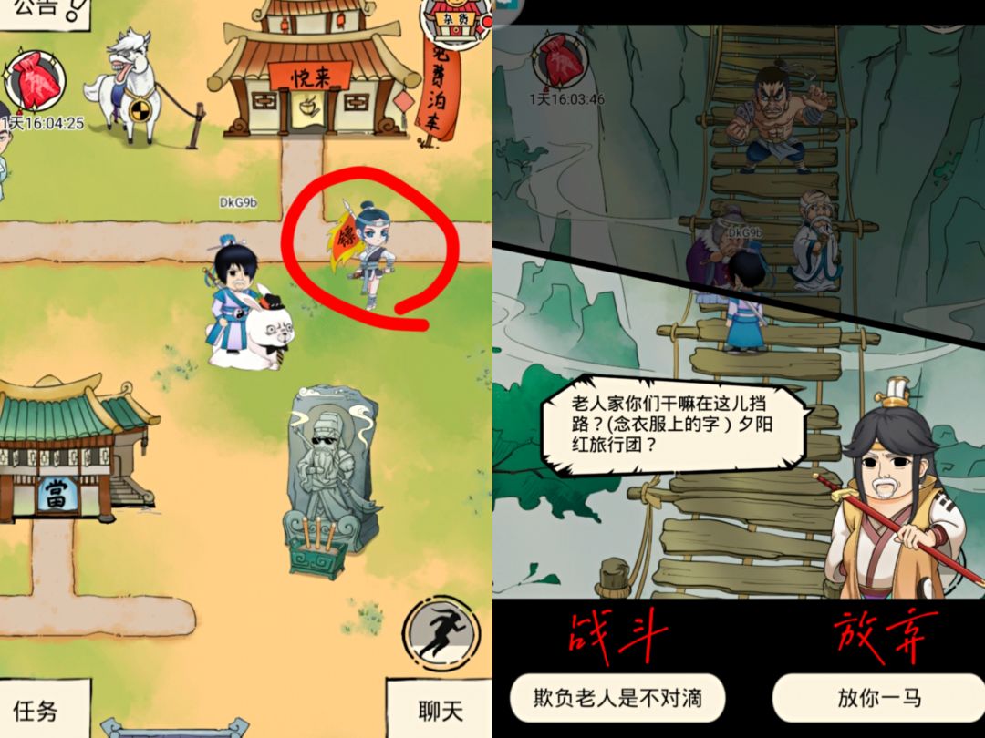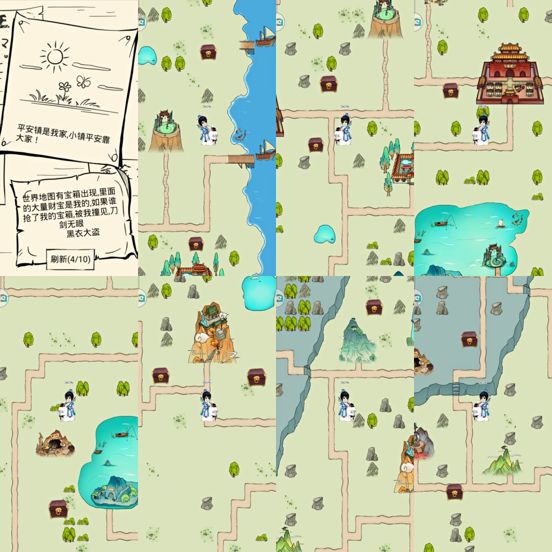 流程:点击告示牌→刷到四大恶人任务→先与右边镇长对话(一律选左,左边选择接受任务,右边放弃任务并且平安镇大部分NPC全部死亡,降低好感)→对战东南西北四个角恶人,获胜即可获得奖励