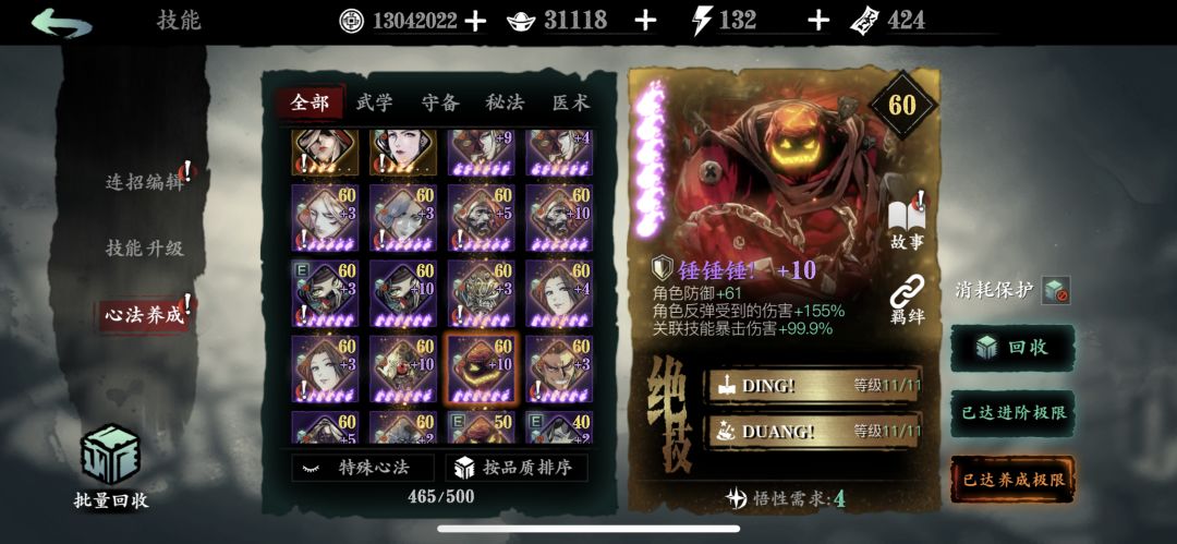 同理,无锋想要自己的防御倍率体现价值,就需要去堆自己的防御属性。但是 心法位置是有限的,你不能在拥有很高的防御的同时,在攻击上也追平别人。 你还要堆你的心法羁绊,这些羁绊卡什么类型都有,防御,秘术,攻击。你不能全吃防御。