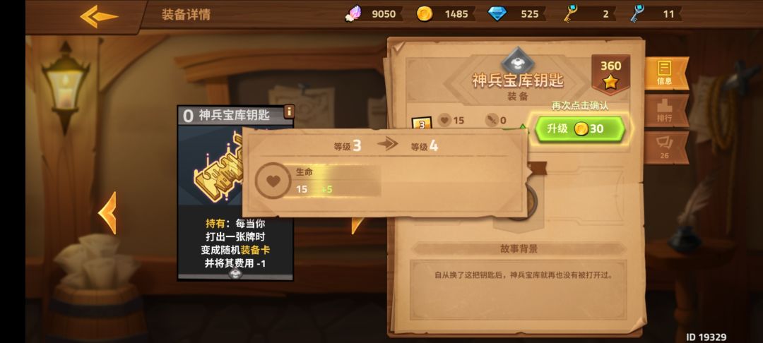 关于万能装备,有一个小技巧,图中所示的神兵宝库钥匙因为可以任意变化,所以升级优先级会比较高于其他装备,黏土同理。