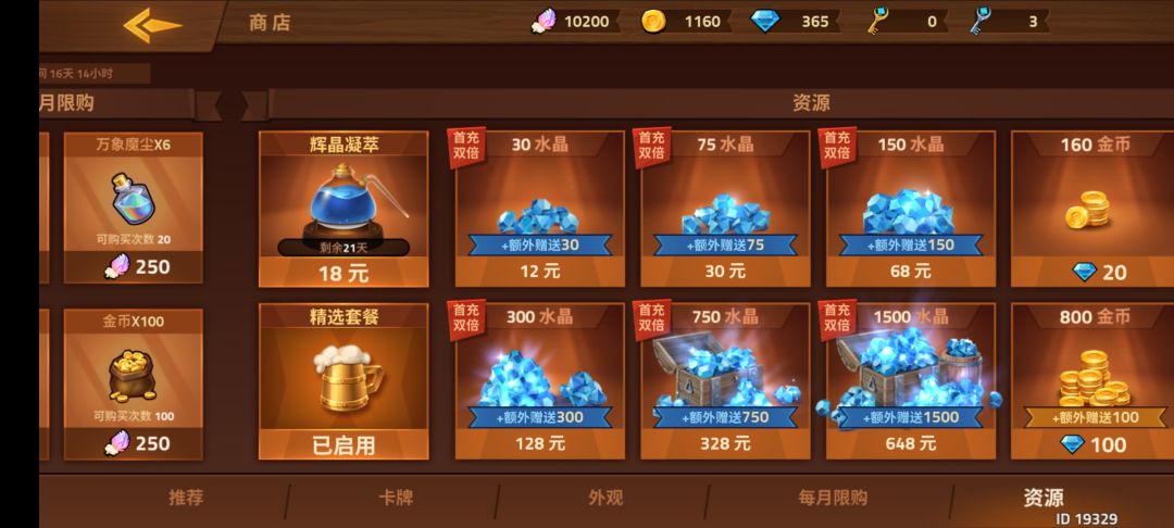 氪金分为两种,一是每周30的2000金币礼包,二是水晶换金币。第一种有余💰又想快速升级买卡的,可以考虑买一买,性价比一般;至于第二种,就仁者见仁,智者见智了,除非急缺or氪佬,否则不建议买。