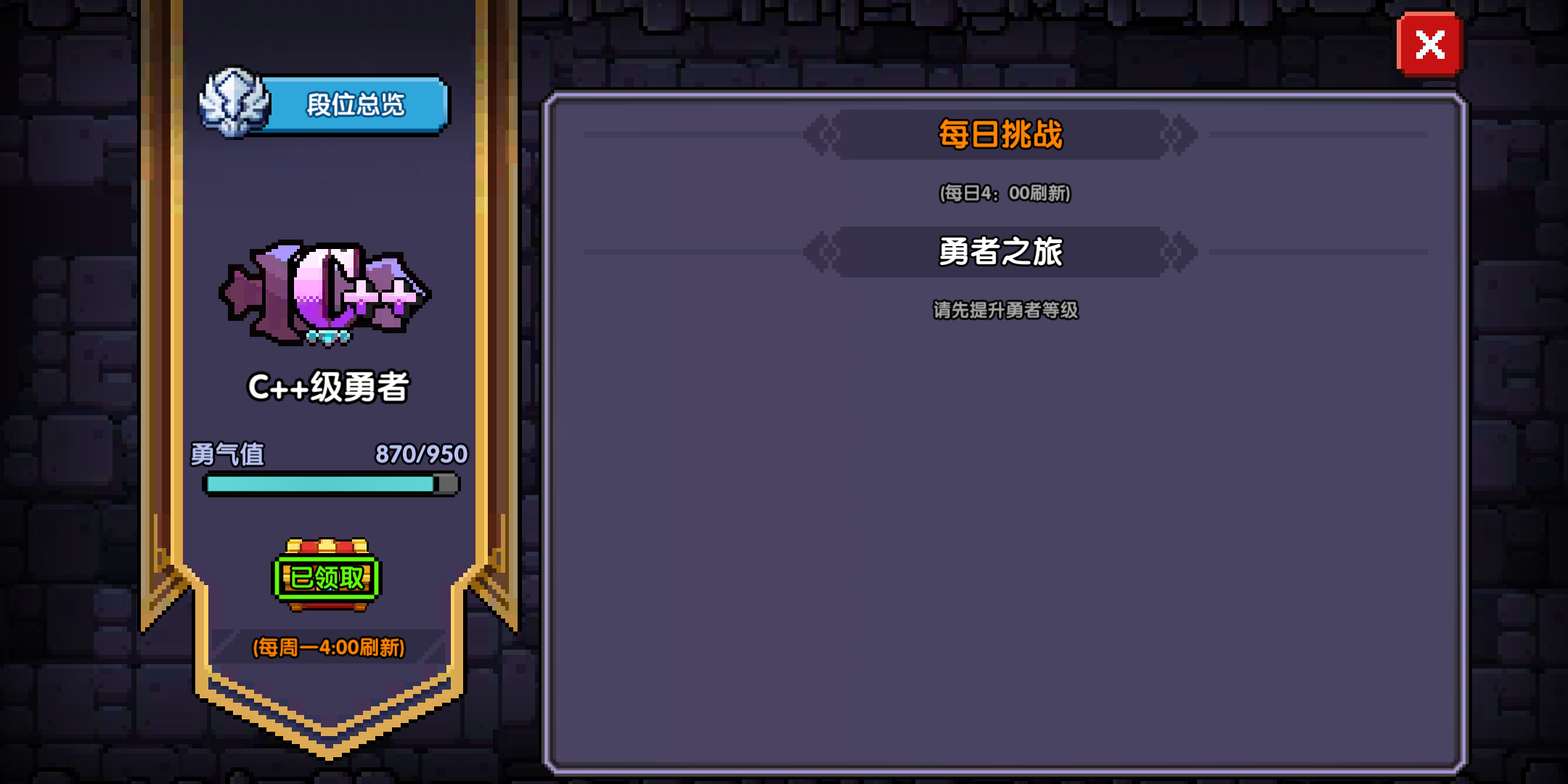 做完任务等级来到了33,段位升到C++,开通了深渊狩猎,自动从第二层开开始,开启了魂卡试炼,因为伤害不够,只能打到困难。领了15个黄金币币。距离70币快了!