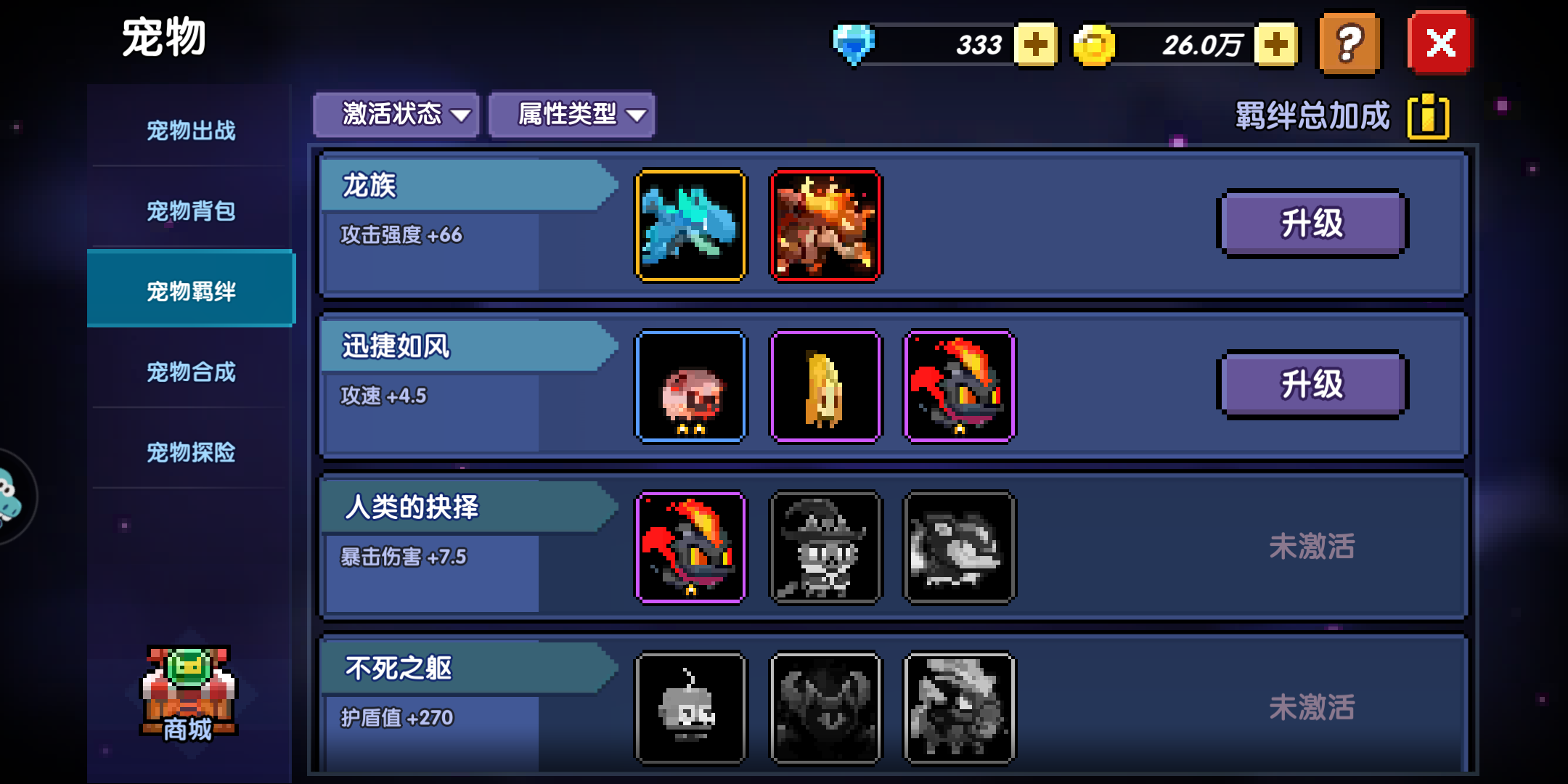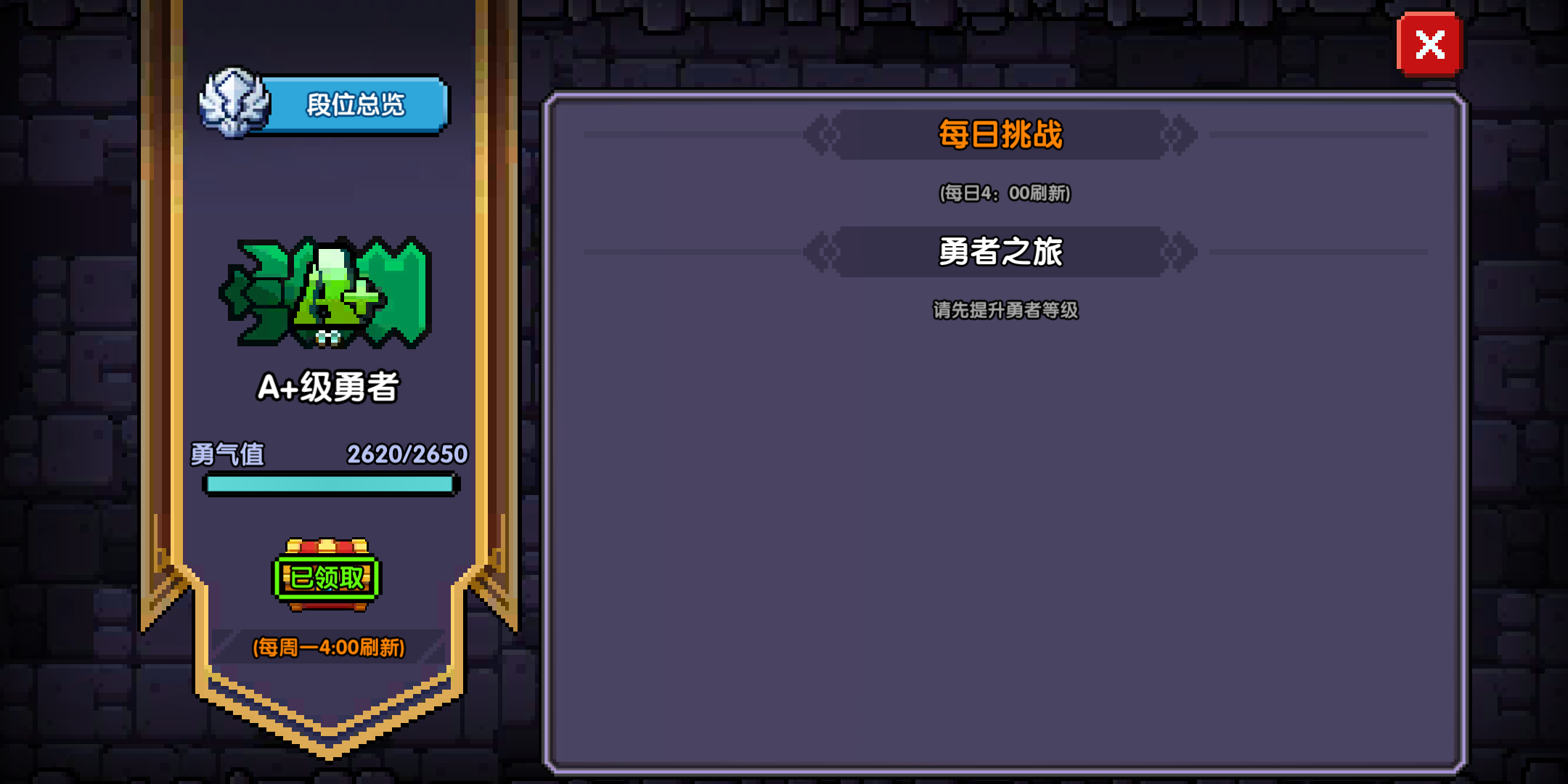任务做完等级到了26,段位升级到了C,只拿到了5个黄金币,运气不错,又抽了一次红武,分解成碎片,可惜不够材料洗属性。可以打钥匙了。进的工会运气不错,找到人带跑1次150双人秘境,做了红宠的成就任务。提前解锁了一个羁绊。探险可以探到2-10