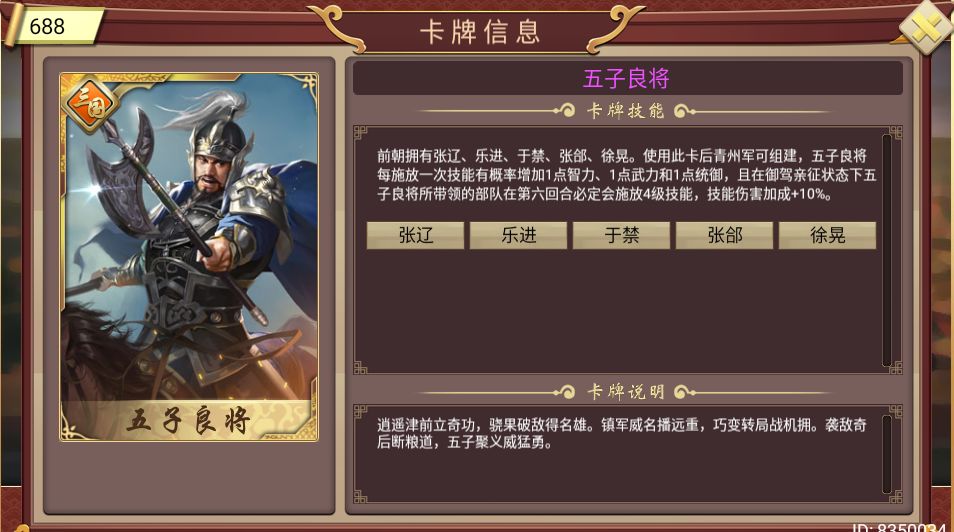 技能二:躯干长存,该将领所统帅的军团战斗胜利或战平时军团训练度+5,不会超过上限