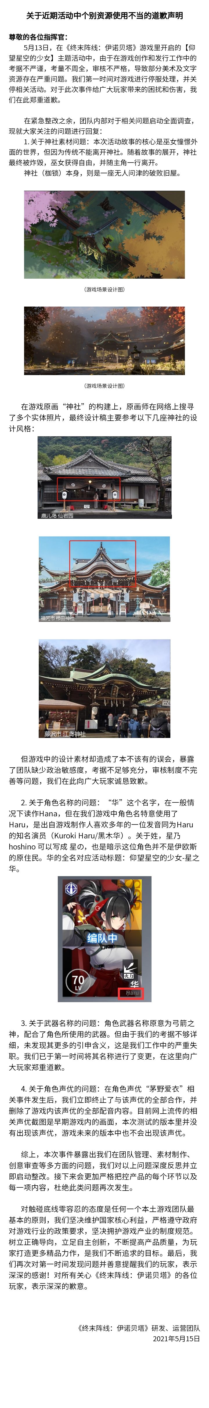 关于近期活动中个别资源使用不当的道歉声明