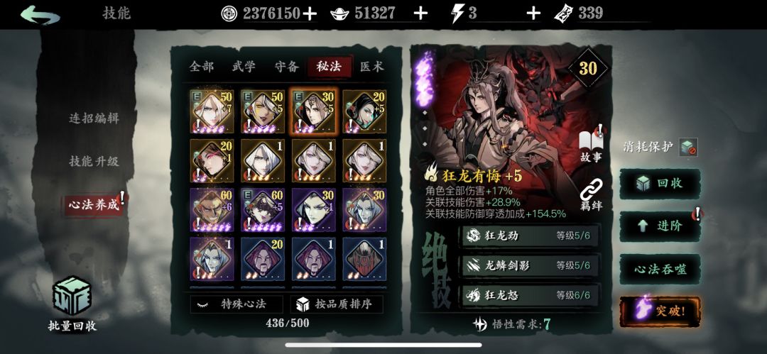 心法,这套装备主打就是真伤,主要很吃狂龙技能等级,其他真伤姐妹5火就行。