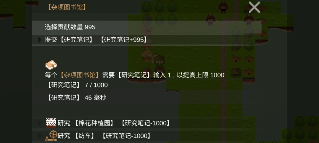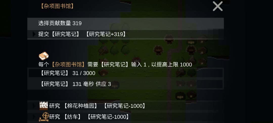 因此,假如我有三条“研究笔记生产线”,我就可以在1000秒后,在杂项图书馆获得3000的研究笔记,解锁需要3k笔记来解锁的科技(简称:3k科技),或者解锁一个1k科技和一个2k科技,或者三个3k科技。