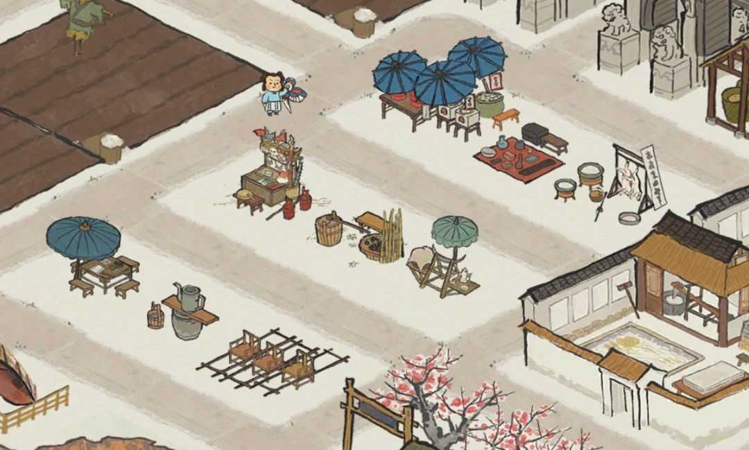 岸边放了绝美的太平花市,不会挡到后面的农业区,也不会不合理~