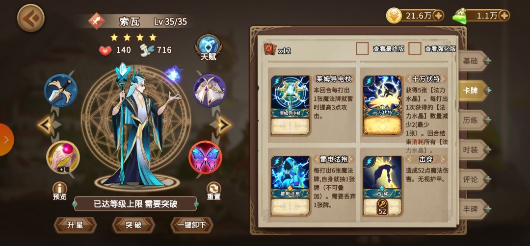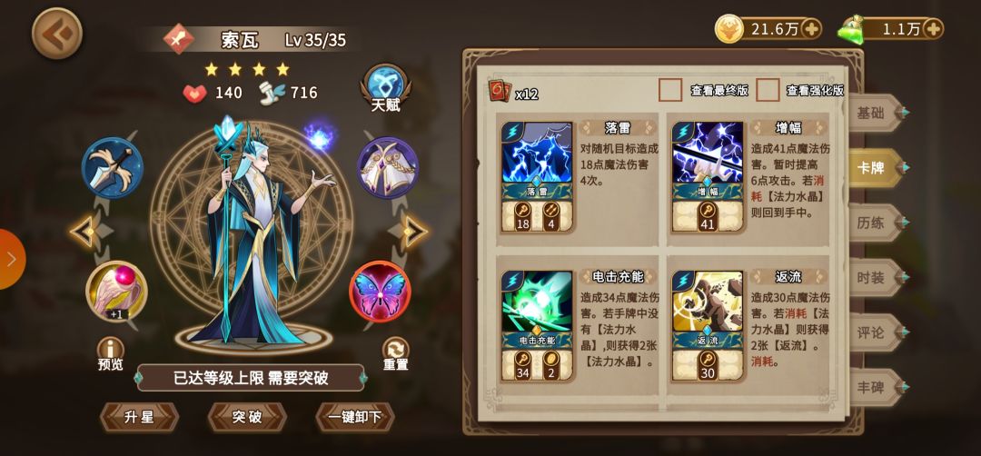 索瓦也没废牌,但是击穿(对方还剩一丝血但是有很厚的盾时候击穿可用)、落雷、闪电箭不能用来打我们的组合效果所以不推荐(落雷可以用来赌后排),连环闪电可以打非单体伤害所以还行,法术共鸣的话需要灵活运用了(这张卡我很少用,不太懂)