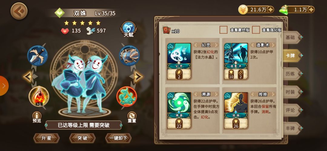双诛的牌幻影面具不太推荐,牺牲太大