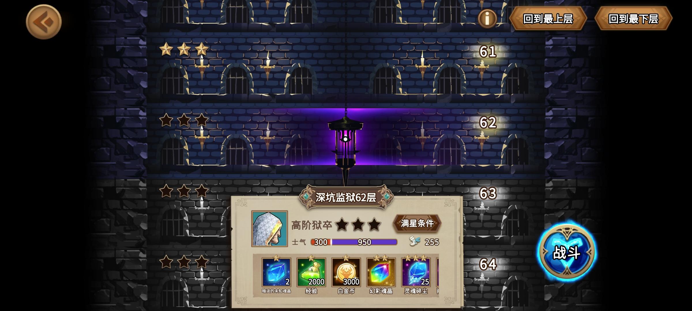蓝白队地牢打到了62…